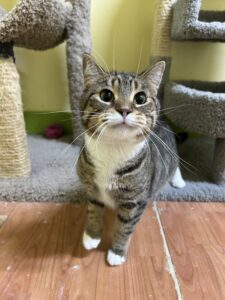 Meet Royal, our majestic tabby prince bursting with playful energy and charm. This spirited boy lives for playtime, especially when his beloved wand teaser toys are involved in the fun! When he’s not zooming around, Royal happily soaks up pets and, on occasion, he blesses his subjects with royal snuggles. He truly is a joy to be around!