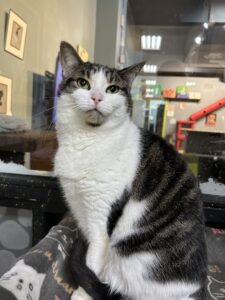 Meet Onyx, our sweet and spirited gem of a kitty who has been patiently waiting to find his forever home since July 2024. Onyx adores cuddles, and while being picked up isn’t his favourite thing, he loves to gently rest his head on your lap to soak in your love!
