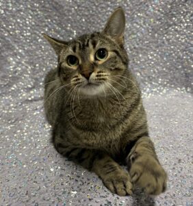 Meet Christie, our cuddly tabby girl with a playful spark. Christie adores cozy snuggles; while she’d rather not be picked up, she’s happiest curled up right by your side! After waiting patiently for over a year, Christie’s more than ready to find a loving home and share her sweet, steady affection with someone special.