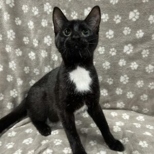 Meet Milkshake, our charming black kitten who’s ready to shake up your life with love and fun! Brought into our care with his mom and four siblings, this playful guy is full of zoomies and adorable antics. Milkshake will proudly carry toys around in his mouth while letting out the cutest growl – he’s small in size, but big in spirit!